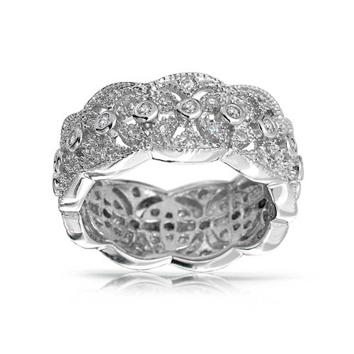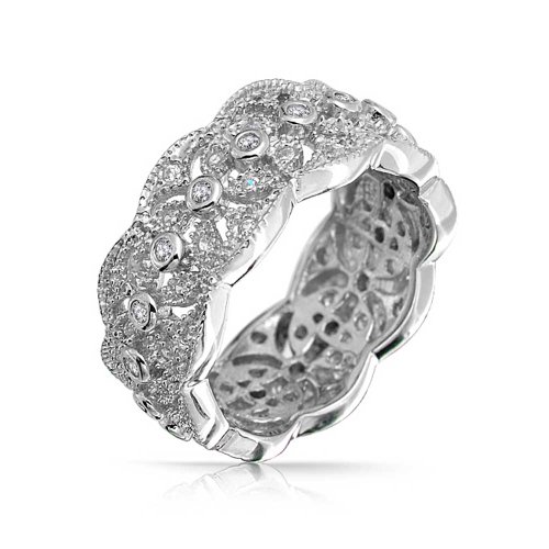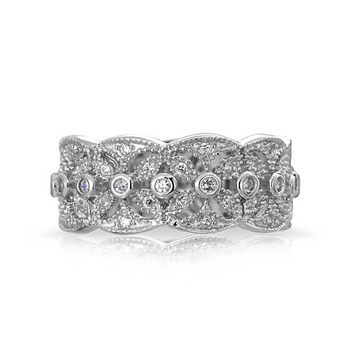 -. Title : Bling Jewelry Sterling Silver CZ Vintage Style Leaf Band Ring