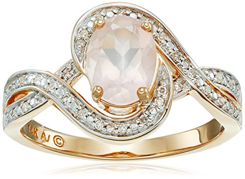 -. Title : 14k Yellow Gold Oval Rose Quartz with Diamond Ring, Size 7