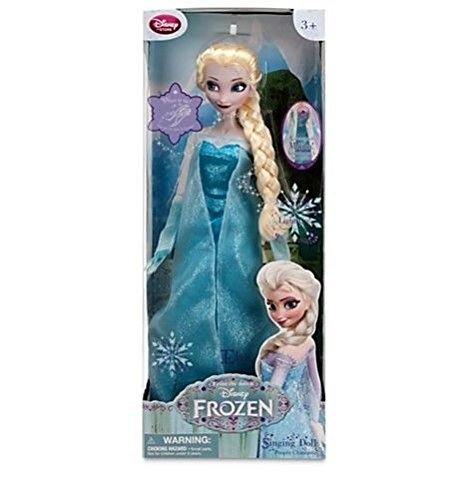 Product Details Elsa sings Let It Go when motion activated by waving in front of her Elsa lights up in a frosted icy blue glow when motion activated On/Off switch located on the side Articulated arms and legs Fully rooted hair in waist-length braid Signature outfit with glittering bodice, satin skirt, sheer sleeves and sheer dress overlay with glitter detailing Inspired by Disney's animated feature Frozen Ages 3+ Requires 3 x LR44/AG13 button cell batteries that are included Plastic / polyester 16'' H