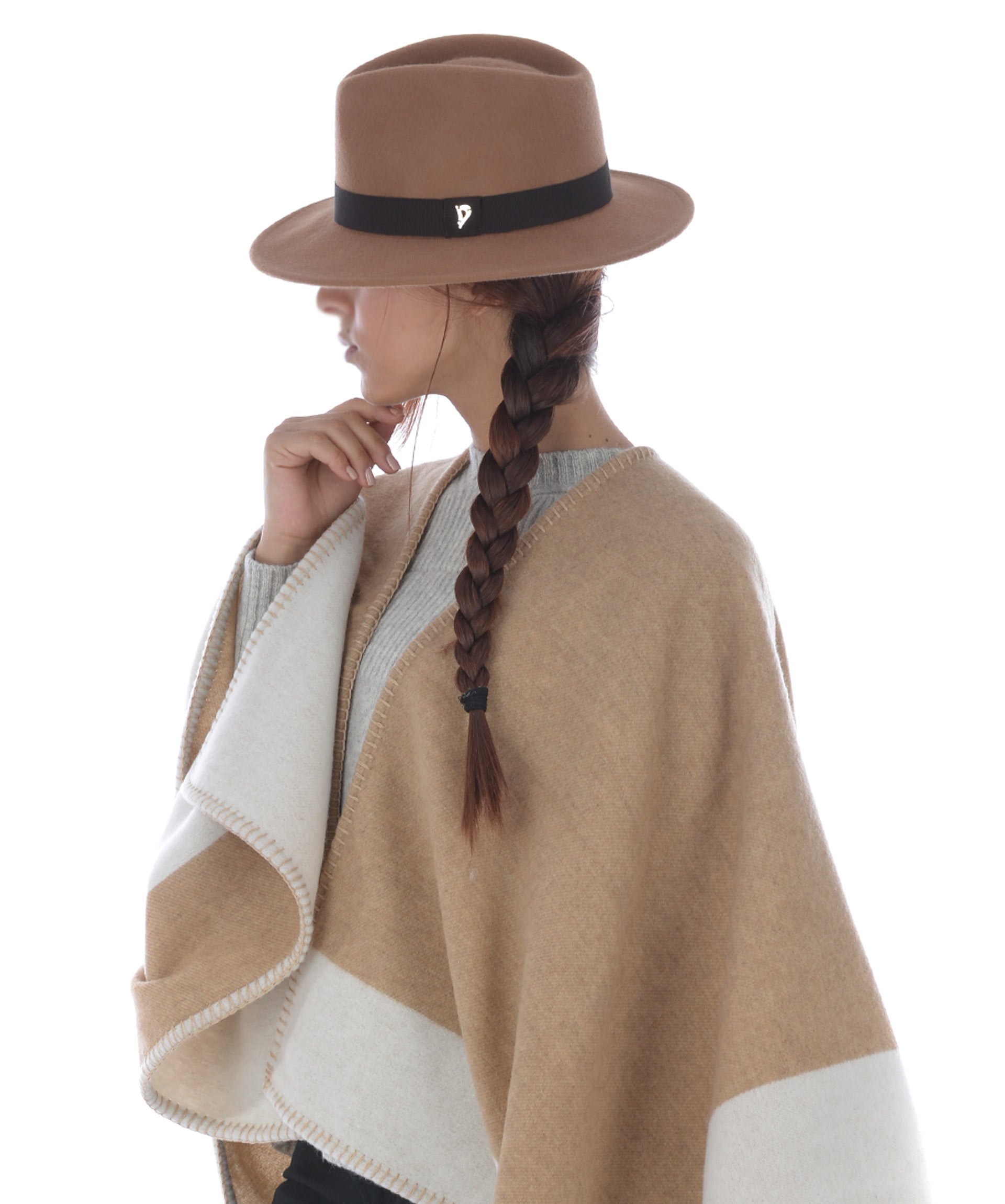 Cappello Dondup in feltro di lana Cammello. Fascia in gros grain marrone e logo in metallo. Non foderato. Misura in foto 2 100% lana
