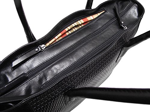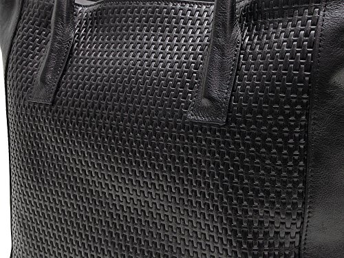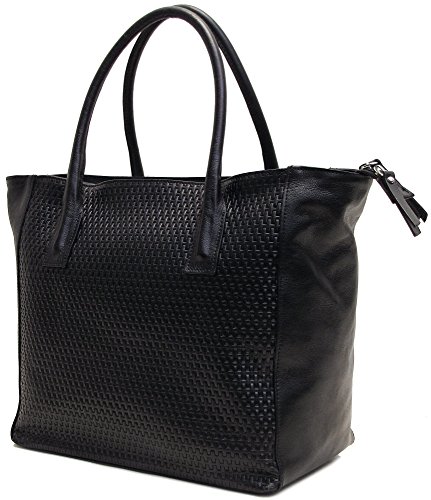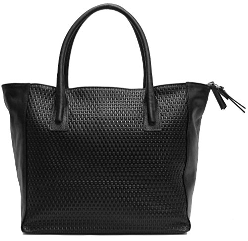 Firenze Tote Bag is made with stamped Italian calfskin leather and comes in Black and Brown. Made in Italy.