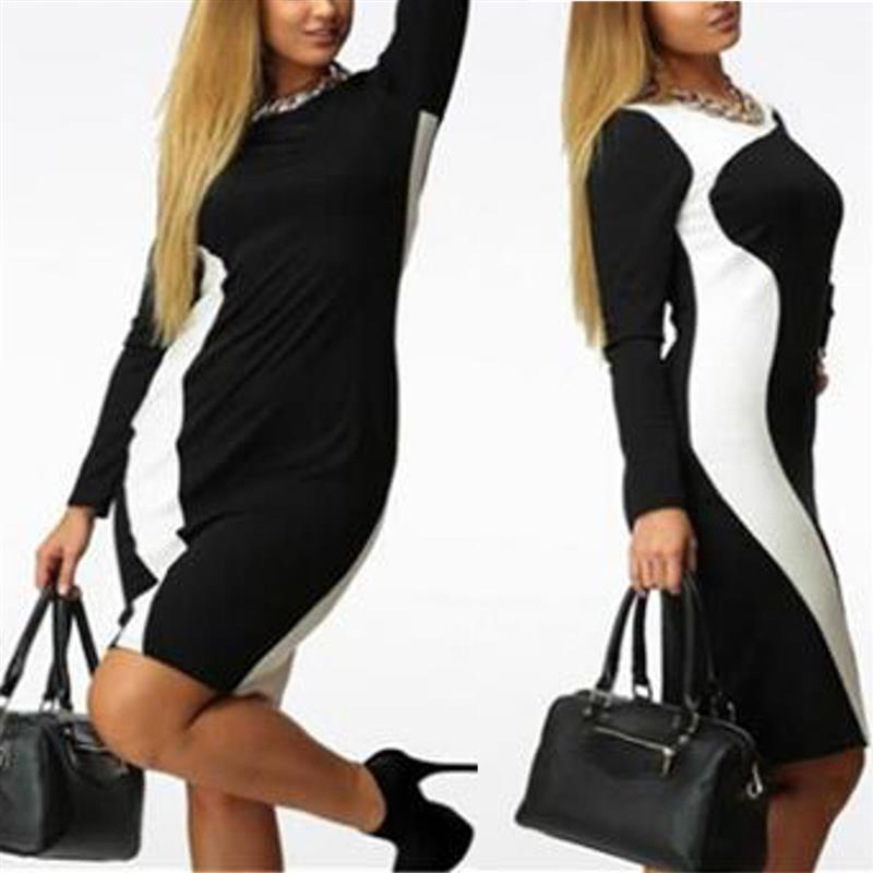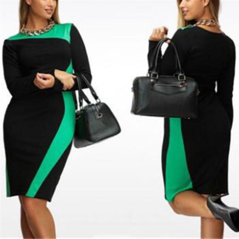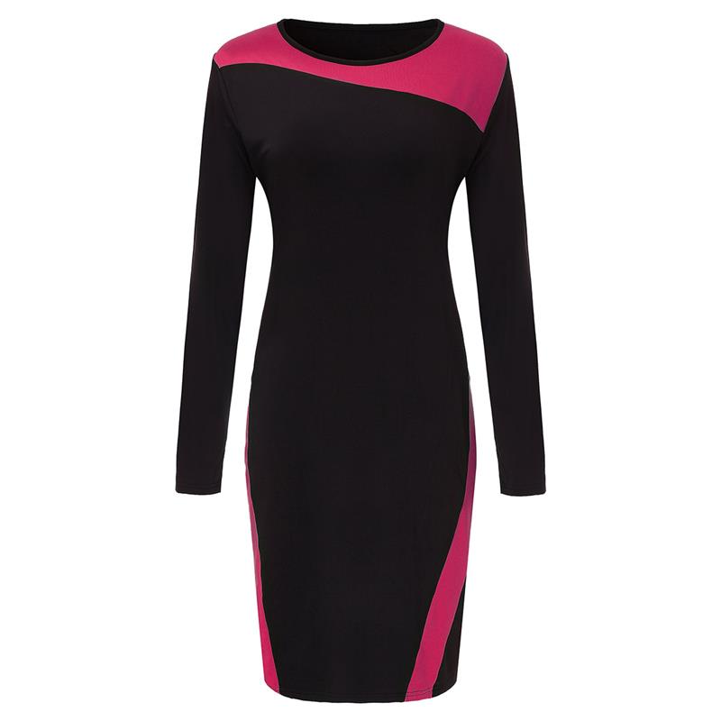 Product Description: O-neck, Long Sleeve, Patchwork, Large Size, Knee-length Dress