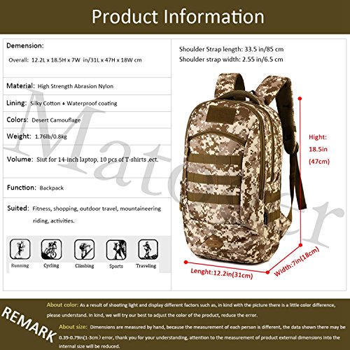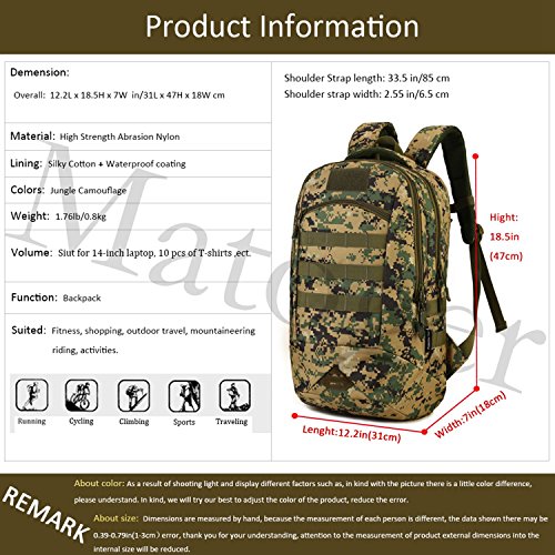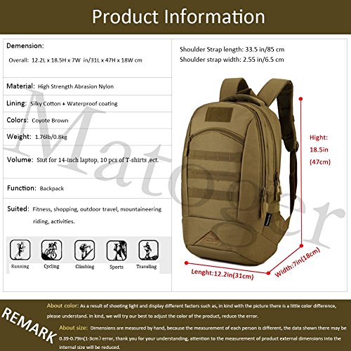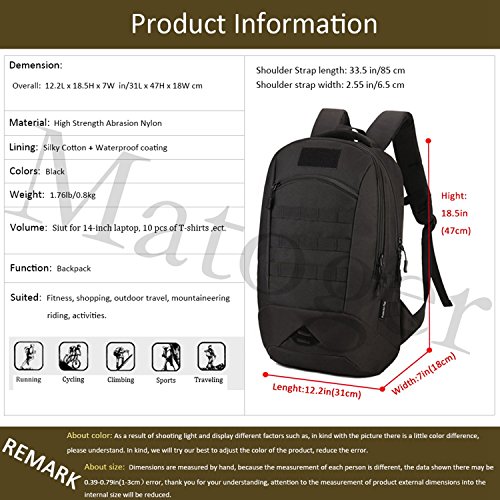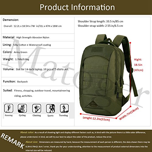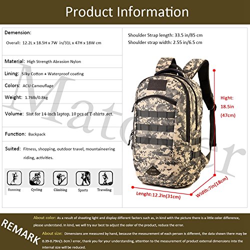 -. Title : Matoger 35L MOLLE Backpack Rucksack Gear Military Tactical Backpack Nylon Student School Bag