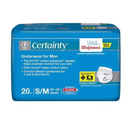 Product DescriptionCertainty Dri-Fit Underwear for Men, Maximum Absorbency S/M White0