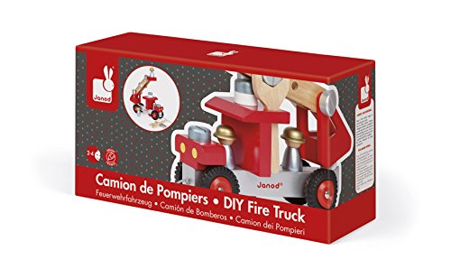 -. Binding : Toy -. Brand : Janod -. Color : Mixed -. EAN : 3700217364984 -. Feature : Build your fire truck with real tools and then play with it! / Includes 27 wooden pieces / Vibrant colors / Designed in France / Recommended for children aged 2-4 years old -. IsAdultProduct : 0 -. Label : Janod -. Manufacturer : Janod -. Model : J06498 -. MPN : J06498 -. PackageQuantity : 1 -. PartNumber : J06498 -. ProductGroup : Toy -. ProductTypeName : TOYS_AND_GAMES -. Publisher : Janod -. ReleaseDate : 2013-07-28 -. SKU : B007JWWJQU -. Studio : Janod -. Title : Janod DIY Fire Truck -. UPC : 433599210480 -. Warranty : 1 year warranty against manufacturer defects