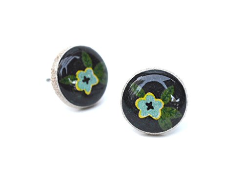 -. Title : Black and blue flower stud earrings. Black stud earrings
