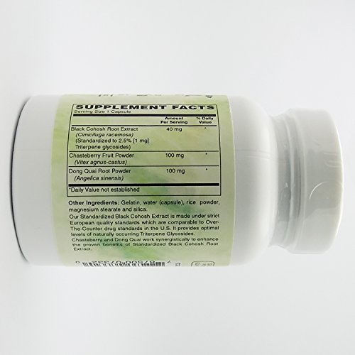 -. Feature : Fukinolic acid (a compound found in black cohosh) appears to have estrogen-like activity. Proponents sest that black cohosh's potentially estrogen-like effects may be beneficial to women as they experience menopause-related declines in their estrogen levels (a key factor in the development of menopausal symp). / Black cohosh is used as a natural remedy for a number of menopause-related symp, including hot flashes, night sweats, disturbances in mood, and vaginal dryness. / In addition, black cohosh is sometimes used to treat menstrual irregularities and alleviate symp of premenstrual syndrome. / Quality and Potency Guaranteed