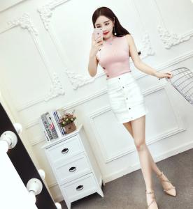 2ピース セットコーデ ノースリーブ タイトトップス タイトスカート フロントボタン 大人カジュアル セクシー プチプラ