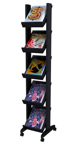 PaperFlow Single Sided Literature Display, Mobile Corner Unit, 5 Shelves, 13.78x15.17x66 Inches, Black (259N.01)