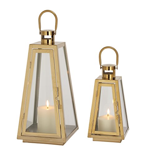 -. Title : GwG Outlet Stainless Steel Glass Gold Set of 2 Lantern in 13", 18"H 70081
