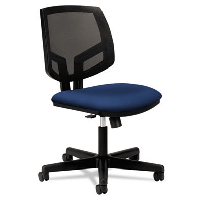 -. Brand : HON® -. Color : Blue -. Feature : Breathable mesh back and generously-proportioned seat cushion with stain-resistant polyester upholstery. / Easy-to-use controls deliver a customized fit. / Synchro-tilt allows back to recline at a 2-to-1 ratio to seat angle. / Five-star base with casters for mobility. -. Label : HON COMPANY -. Manufacturer : HON COMPANY -. MPN : H5713.GA90.T -. NumberOfItems : 1 -. PartNumber : H5713.GA90.T -. ProductGroup : BISS -. ProductTypeName : LAB_SUPPLY -. Publisher : HON COMPANY -. Studio : HON COMPANY -. Title : Hon - Volt Series Mesh Back Task Chair With Synchro-Tilt, Navy Fabric