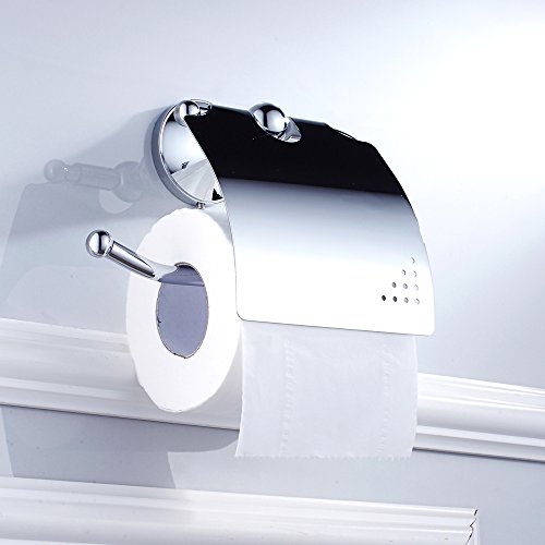 Toilet Paper Tissue Roll Holder Wall Mount by BLISSPORTE Bathroom Tissue Holder Rack Paper towel dispenser with Cover Flag Protecting Contemporary Hotel Style Brass Modern Chrome