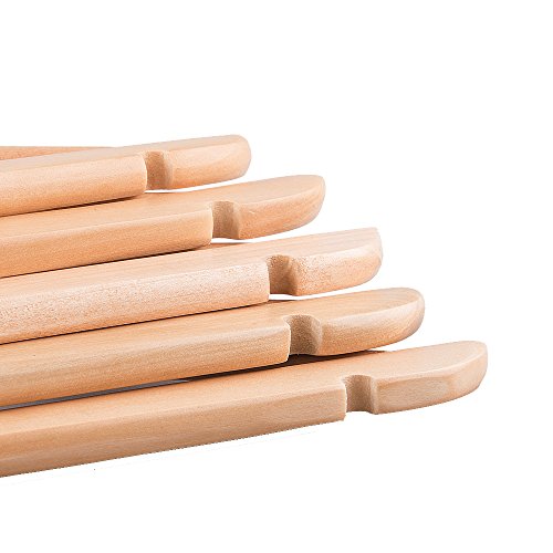 -. Feature : Each hanger measures 17.5" length x 8.75" height x 1/2" thickness; Hook openning measures 1 1/2" / Features anti-rust swivel hook, smooth cut notches, non-slip round bar & real solid wood with premium natural finish. / Designed with anti-rust hook allows 360 degree swivel, easy and simple to use. / Space Saving - flat body ensure these to be the best hangers for maximizing closet storage space. / Smooth notches & anti-slip bar allow you to hang all shapes and styles of coats, skirts, trousers, blouses, suits, dresses and more.