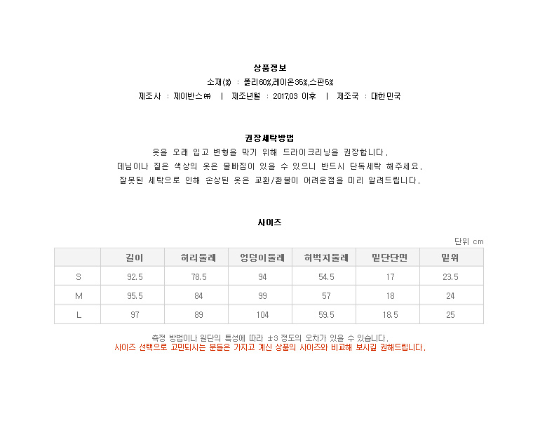 면과 폴리의 혼방으로 착장시 쾌적한 느낌을 주며,