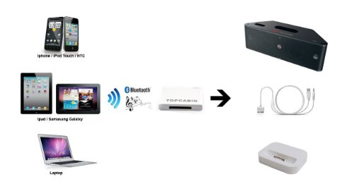 - Title : TOPCABIN Wireless Bluetooth Music Receiver Adapter for iPhone iPad iPod Dock / Bose Sounddock / Beatbox / JBL and other dock stations - 30pins (white)