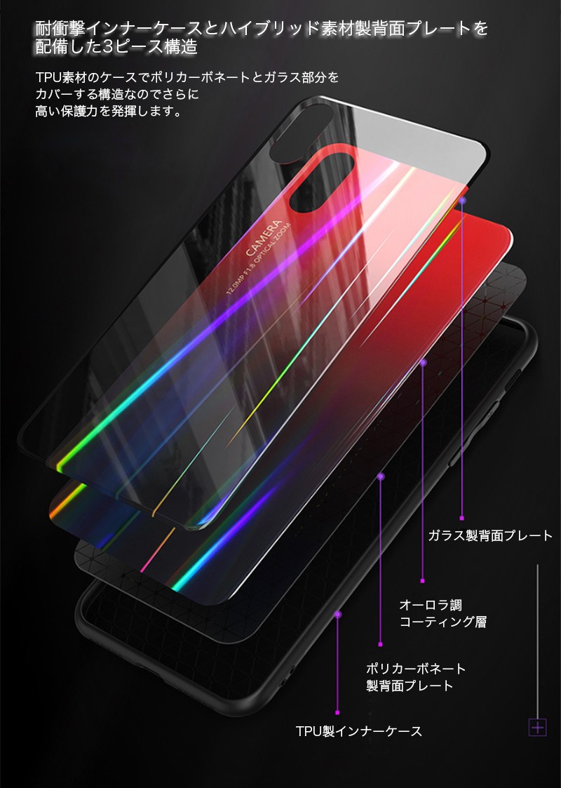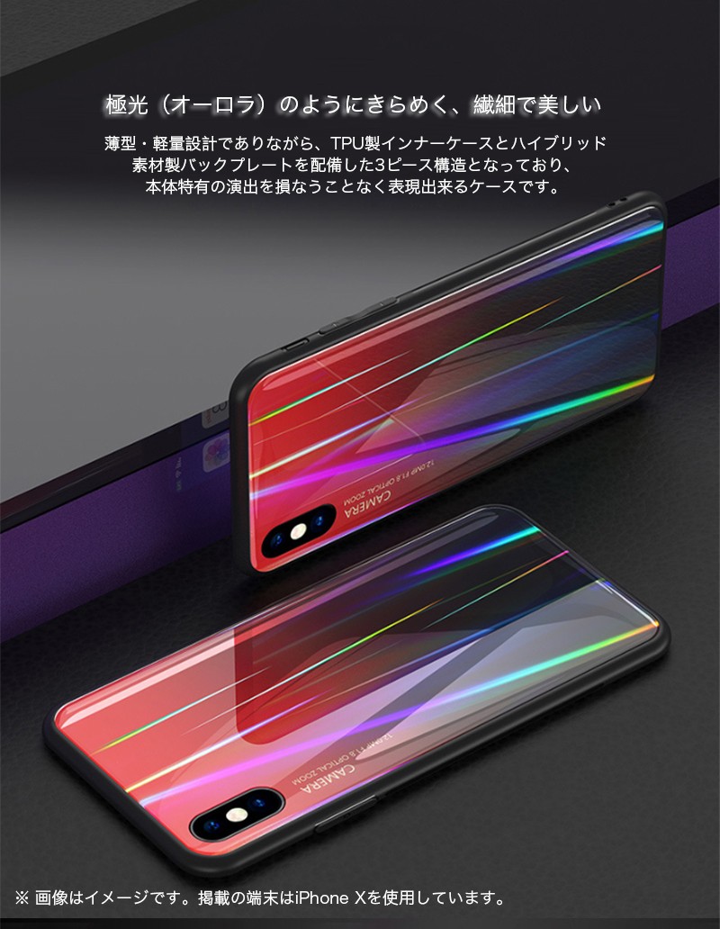 ★「対応機種」iPhoneXS(アイフォンXS)、iPhoneXS Max(アイフォンXSマックス)、iPhoneXR(アイフォンXR)、iPhoneX(アイフォンX)★「カラー」レッド(赤)、ブルー(青)、パープル(紫)、ピンク★「商品特徴」薄型・軽量設計でありながら、TPU製インナーケースとハイブリッド素材製バックプレートを配備した3ピース構造となっており、iPhone本体特有の演出を損なうことなく表現出来るケースです。ケース内側の網状パターンにより、バッテリーの劣化や高温による異常動作を引き起こす「スマホ熱中症」を予防できる。★「キーワード」アイホンXS アイホンXSマックス アイホンXR アイホンX アイホン 5.8インチ 6.1インチ 6.5インチ ケース おしゃれ 極光 オーロラ キラキラ 耐衝撃 TPU ハイブリッド 放熱仕様 3ピース構造 オシャレ カバー スマホケース レンズ 傷防止 衝撃吸収 ぴったり 軽量 薄型 スリム かっこいい 放熱性 高級感 メンズ