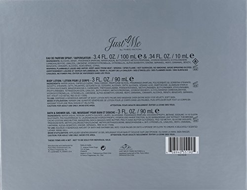 ReleaseDate : 2008-01-18 Studio : Paris Hilton Publisher : Paris Hilton Binding : Health and Beauty Product Description Launched by the design house of Paris Hilton in 2005, JUST ME PARIS HILTON is a women's fragrance that possesses a blend of vanilla, white rose, raspberry, musk, peppercorn, freesia, bergamot, sandalwood, lily, woods, and iris. It is recommended for daytime wear. 0