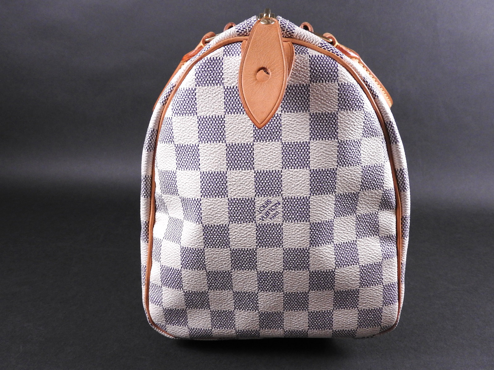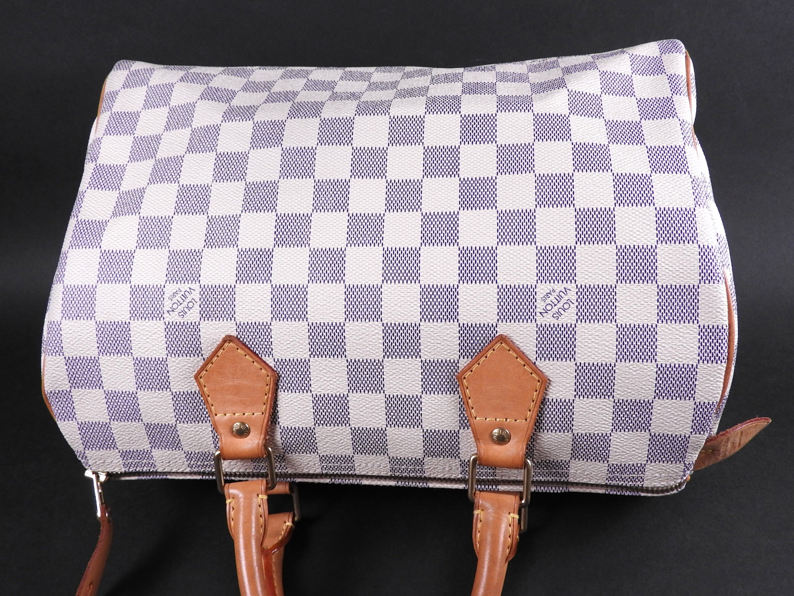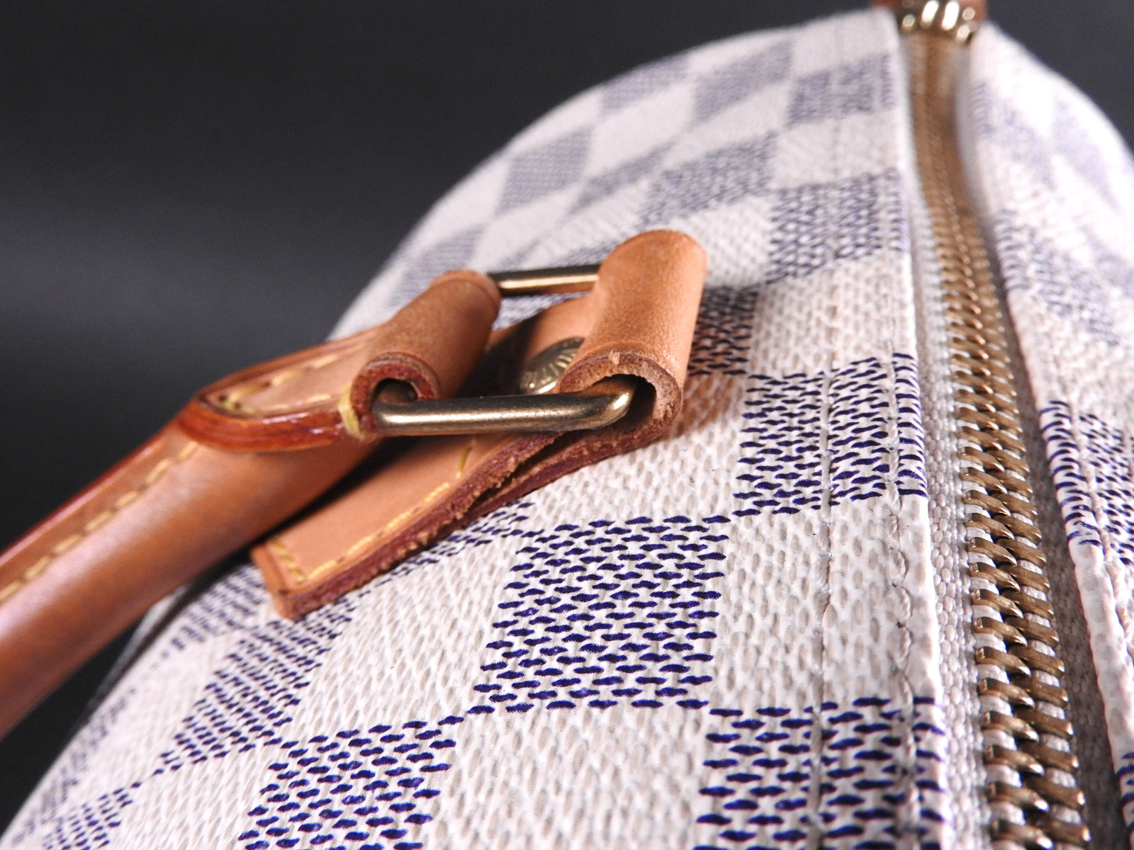 Damier azur canvas: Slightly used feeling. Slight stains and wrinkles. Leather: Used feeling. Small scratches, some stains and tanning. |