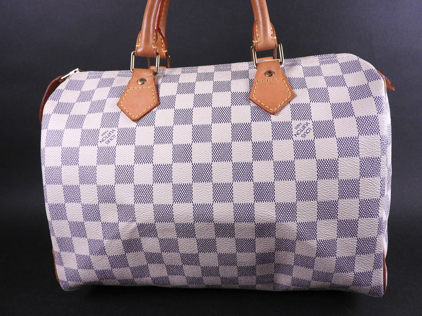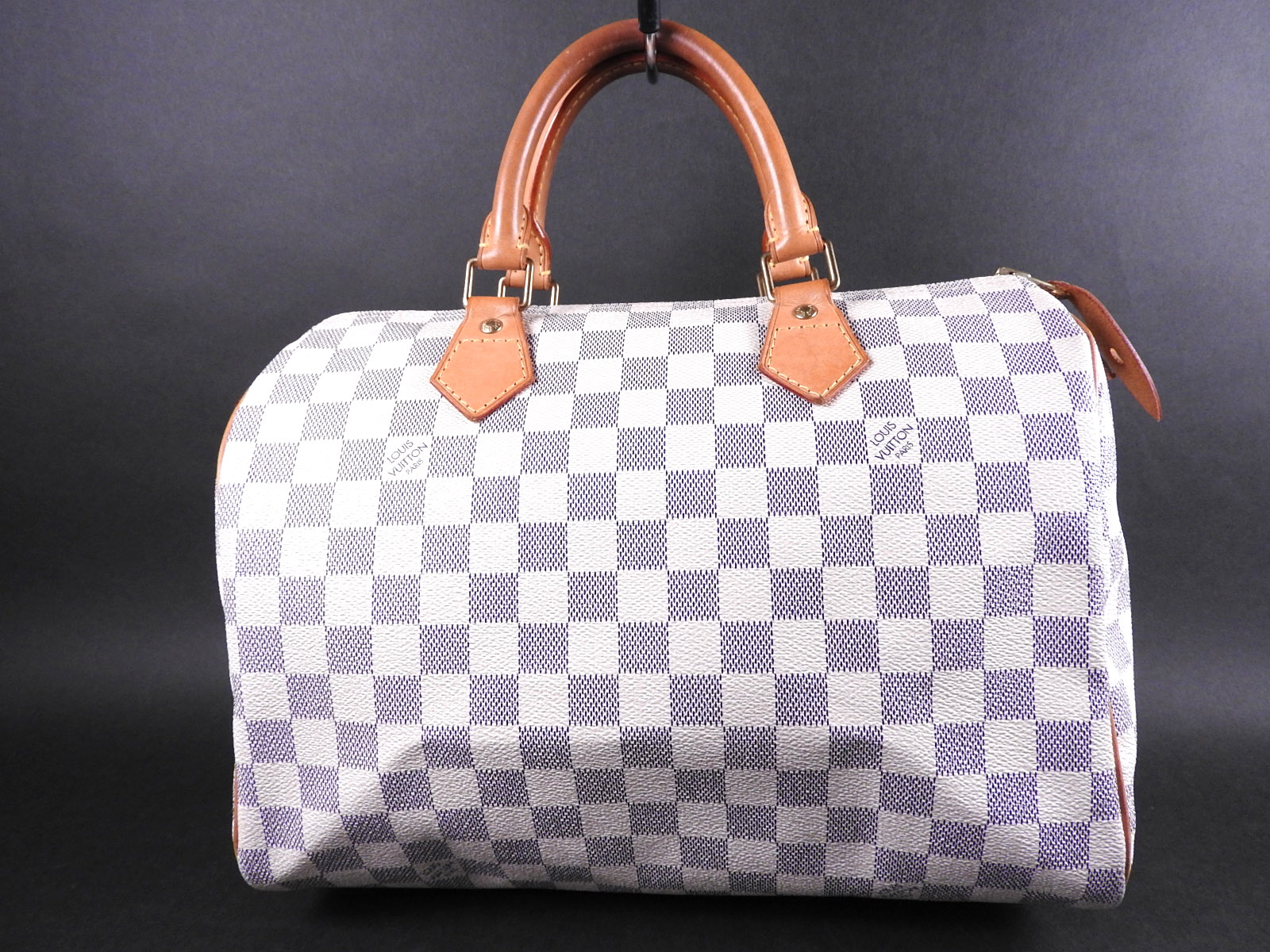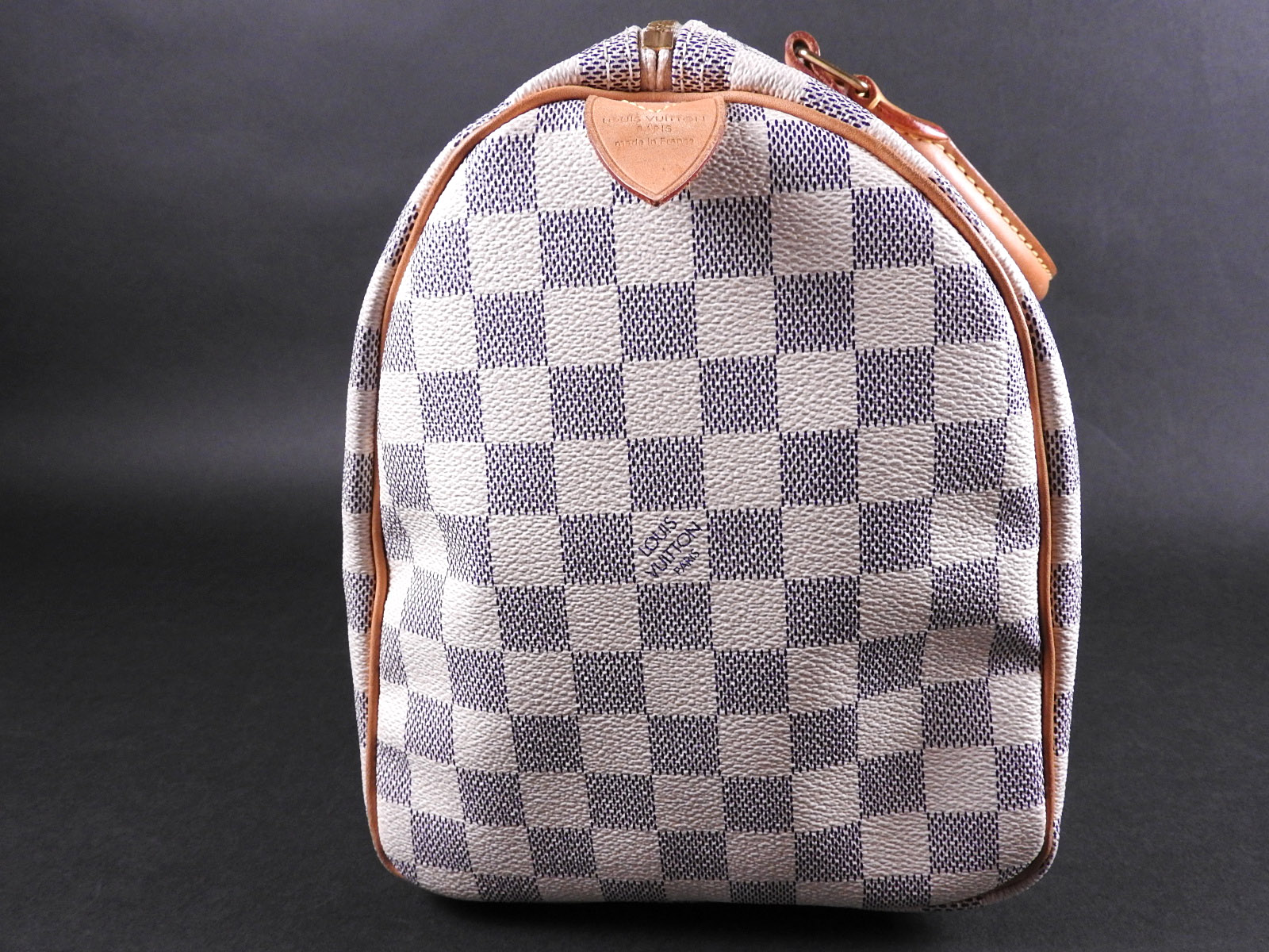 Damier azur canvas: Slightly used feeling. Slight stains and wrinkles. Leather: Used feeling. Small scratches, some stains and tanning. |