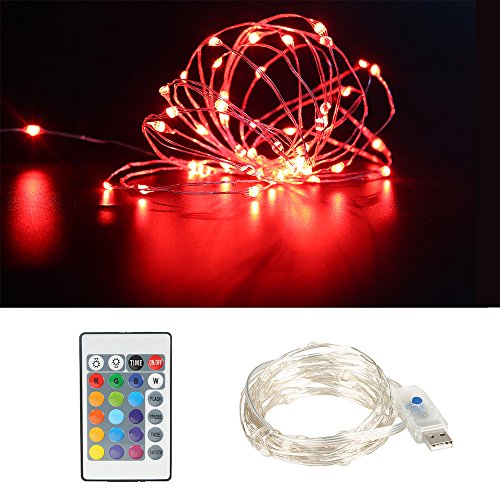 - 【Dimmable RGB Lights with Remote Control Modes】:Features 12 RGB Colors Random changing,dimmable modes include flash,smooth fade,strobe,set time and turn on\off with remote control,Colored LED String lights,color gently fade or joyful jump is all to your taste.