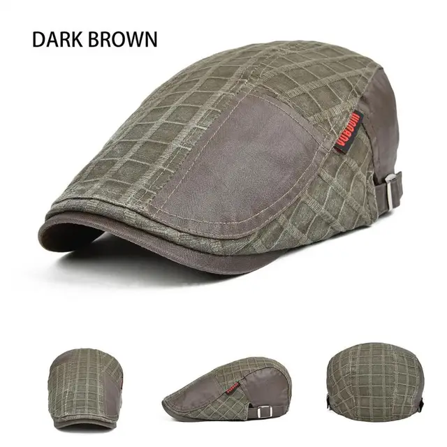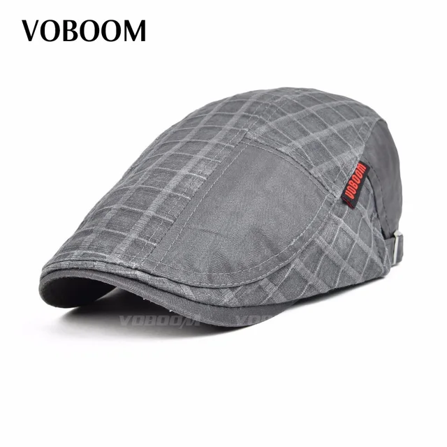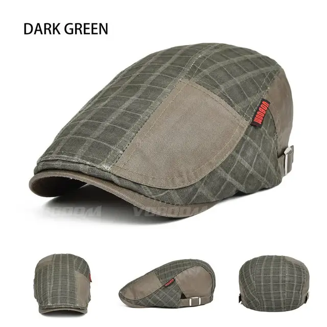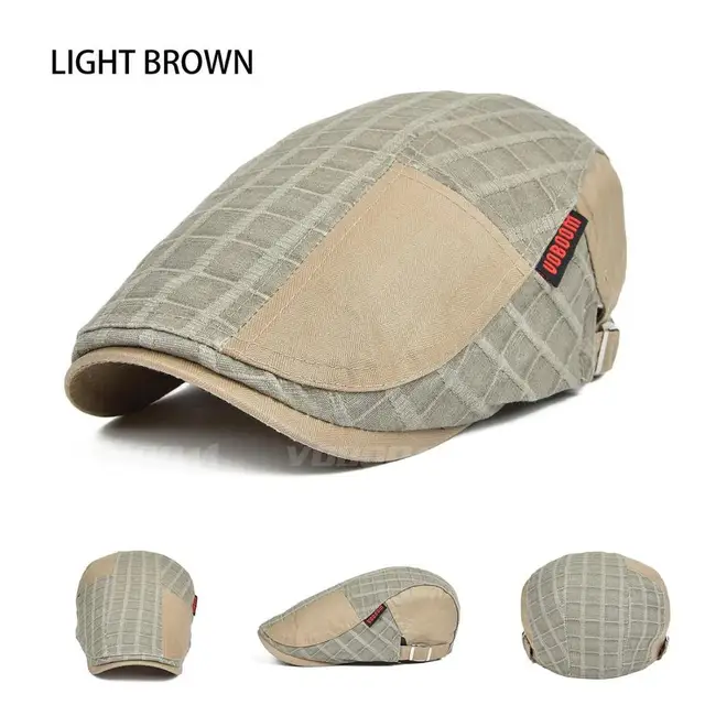 | [해외]Voboom 남성 캐주얼 lino 그리드 패치 워크 여름 클래식 코튼 정점으로 베레모 플랫 아이비 cap 061 |