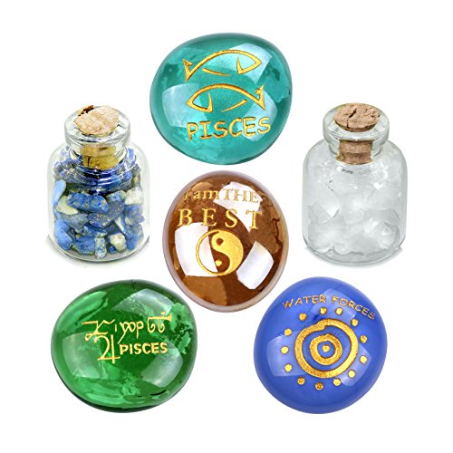Ancient Zodiac Pisces Yin Yang Powers Birthstones Lapis Lazuli Quartz Magical Glass Stones Bottles Set
