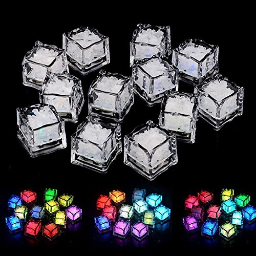 LUCKSTAR® Simulation Ice Cube, 12PCs Plastic Multi-Color Luminous Ice Cube with Colorful Light for Halloween Party Wedding Club Bar Champagne Tower Decoration