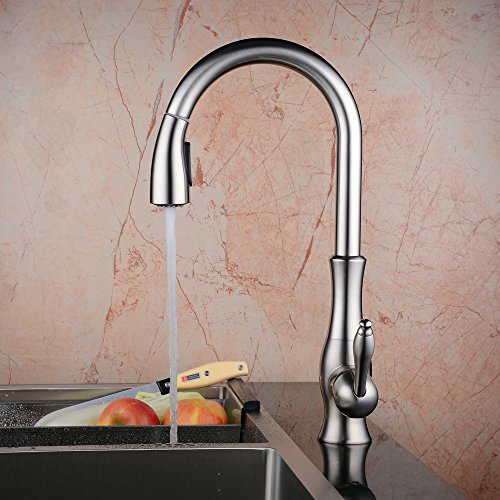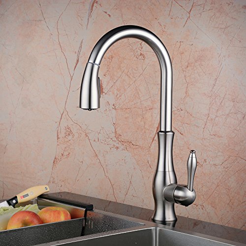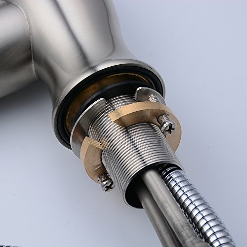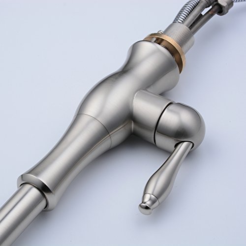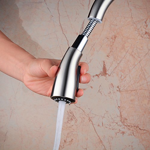 Hiendure Single Handle Dual Mode with Pause Fuction Pull Down Sprayer Brass Kitchen Faucet,Brushed Nickel
