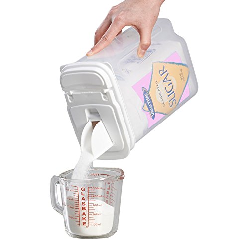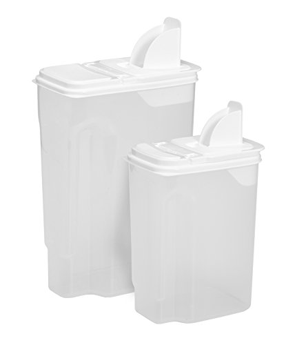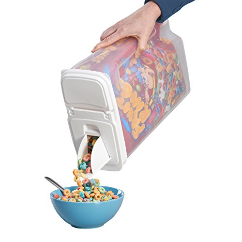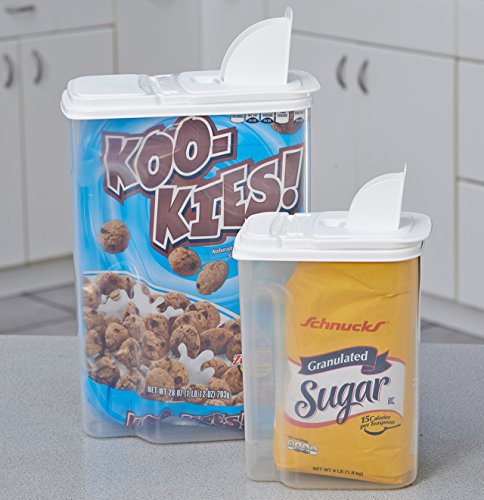 These dispensers feature Buddeez patented Dual-Pour Flip Top and Bag Gripper technology that allows bagged food items to be dispensed directly from their original packaging which remains able to be seen through the transparent container. All nutritional information, preparation instructions, dates and lot numbers remain intact and visible. The Dual-Pour allows pouring of granular items (sugar, seeds, grits), while the Flip Top opens wide to dispense cereals, snacks, treats etc. Easy-Grip handle provides for an easy pour.