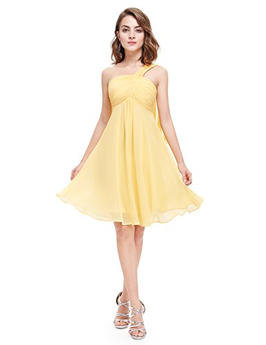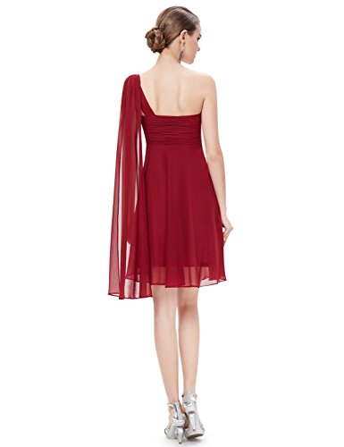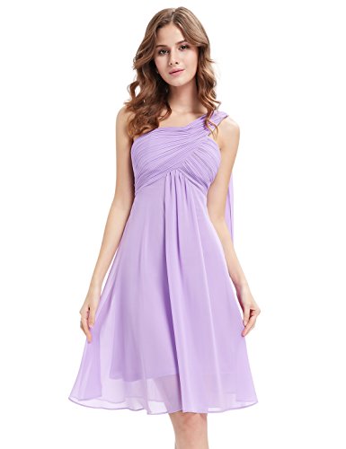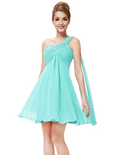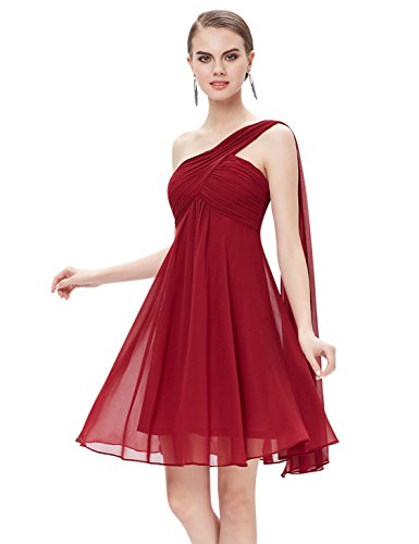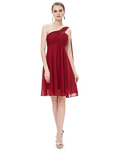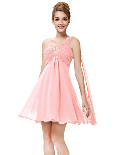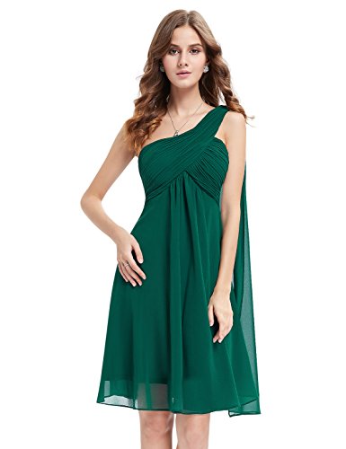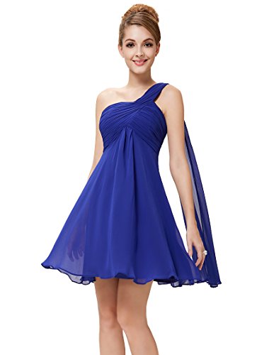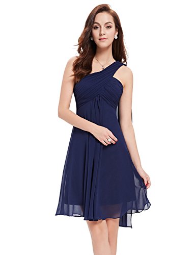 This gorgeous chiffon party dress features a non-adjustable one shoulder trailing design and a gorgeous ruched bust the culiminates in a flowy bottom design. This dress will fall right at or above the knee for most women. This fun design is perfect for bridesmaids or cocktail parties.Feature