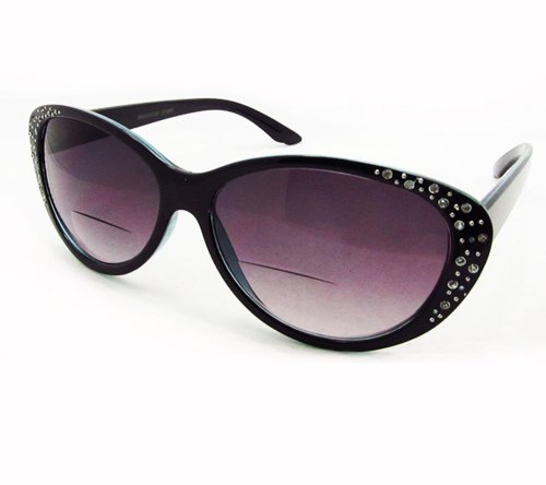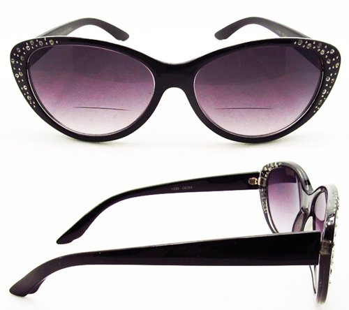-. Title : PRO Cat Eye Bifocal Sunglasses with rhinestones for Women. Bifocal readers from 1.00, 1.25, 1.50, 1.75, 2.00, 2.25, 2.50, 2.75, 3.00, 3.25 and 3.50. Free Microfiber Cleaning Case included.