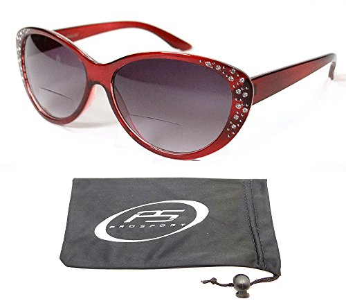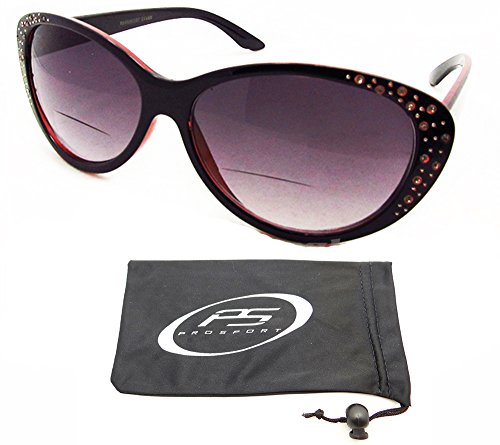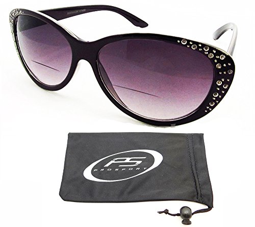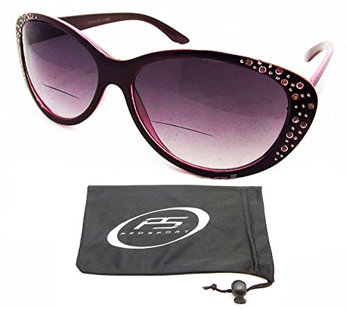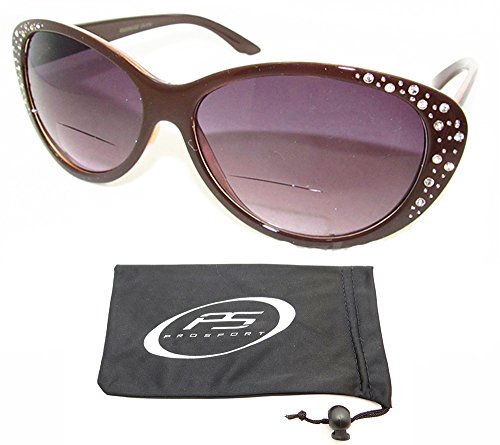 -. Feature : Trendy Cat Eye Bifocal Sunglasses with Rhinestones for Women! / Bifocal parts are hard to see. / UV A and UV B Protection / Available Bifocal Power 1.00, 1.25, 1.50, 1.75, 2.00, 2.25, 2.50, 2.75, 3.00, 3.25 and 3.50 / Original proSPORTsunglasses Microfiber Cleaning Case