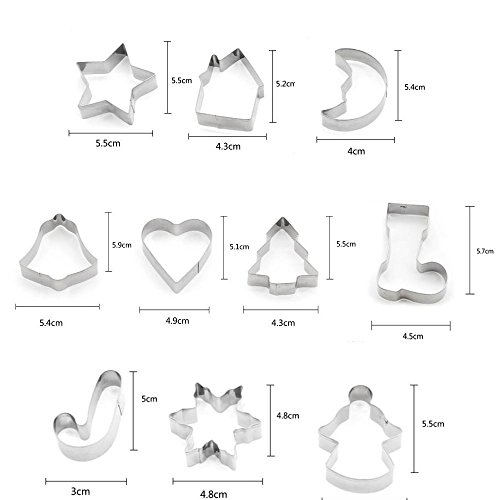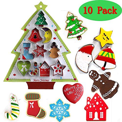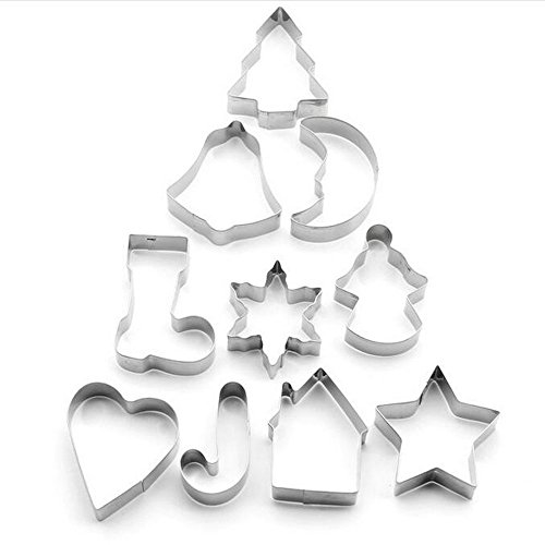 (Set of 10)Stainless Steel Christmas Cookie Cutters for Holiday Cookies, Snowflake Cookies, Gingerbread Man Cookies, Christmas Party and Baking Gift