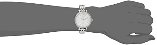 Polished silver-tone bracelet watch featuring dimpled bezel and dial textured with concentric circles