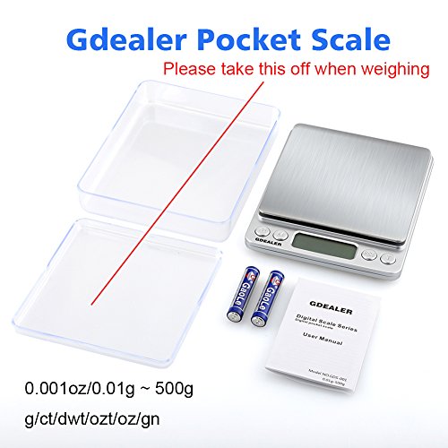 Accurate - This GDEALER scale equipped with high sensitivity gravity sensor and wide range, weigh up to 500g. Readings in units: g/ct/dwt/ozt/oz/gn. Note: Weight less than 3g may decrease the accuracy of the scale.
