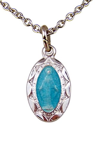 -. Title : Sterling Silver Blue Enamel Petite Miraculous Medal Pendant, 1/2 Inch