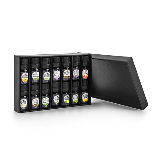 -. Feature : THIS KIT CONTAINS 14 THERAPEUTIC ESSENTIAL OILS: Lavender, Eucalyptus, Lemon, Peppermint, Sweet Orange, Tea Tree, Bergamot, Cinnamon, Grapefruit, Rosemary, Clary Sage, Pine, Spearmint and Patchouli / PERFECT GIFT COLLECTION SET for any occasion like a birthday gift, mothers day, or for anybody who would like to try different oils with their essential oil diffuser. / INCLUDES 14 HIGH QUALITY 5ml theraputic fragrance bottles. Mix them to make the perfect aromatherapy blend. Great present for mom. / GREAT START SET: Use in Spa Rooms, Office Meditation, Kitchen, Garage, Bathrooms, Car or Yoga and great for travel. For external use only. / 100% MONEY BACK GUARANTEE if you are not satisfied with the oil - Try Risk Free!