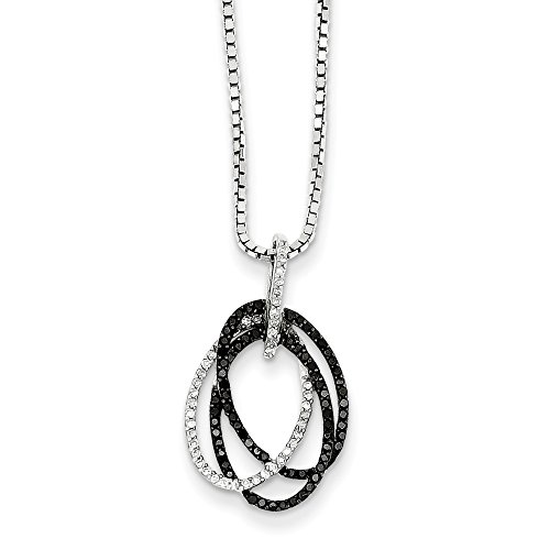 -. Binding : Jewelry -. Brand : The Black Bow -. Department : womens -. Feature : Rhodium-plated sterling silver design / Black & H-I white diamonds, I2-I3 clarity, .24 cttw / Adjustable 18-20 inch box chain w/sP.R.Ing ring clasp / Average weight is 1.44 grams / Includes our custom gift box -. Label : The Black Bow -. Manufacturer : The Black Bow -. MPN : N10825 -. NumberOfItems : 1 -. PackageQuantity : 1 -. PartNumber : N10825 -. ProductGroup : Jewelry -. ProductTypeName : FASHIONNECKLACEBRACELETANKLET -. Publisher : The Black Bow -. Studio : The Black Bow -. Title : Black & White Diamond Triple Oval Necklace in Sterling Silver