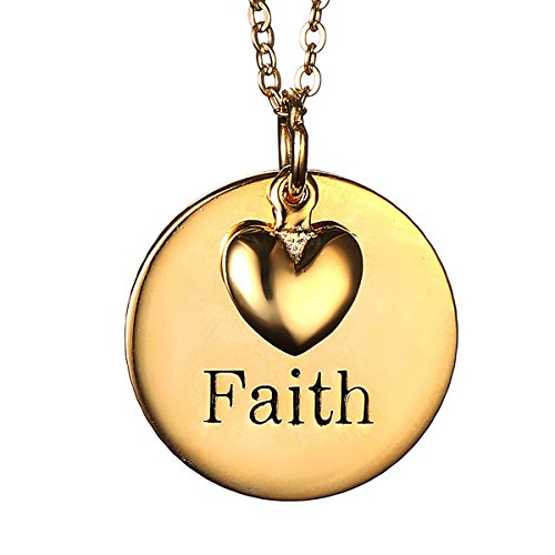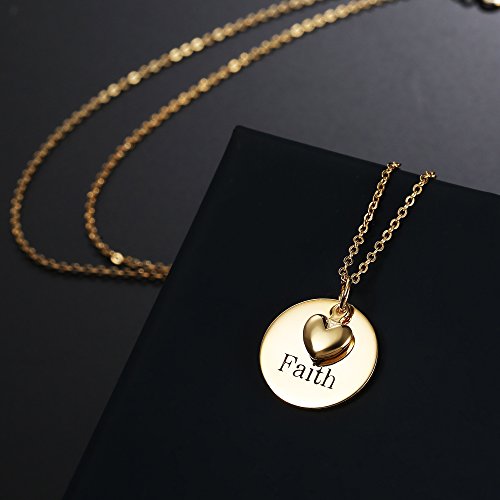 -. Title : ML Gold Plated 925 Sterling Silver Love Heart And "Faith" Engraved Pendant Necklace