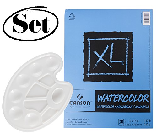 Watercolor Paper Pad 9”X12” Fold Over Bound, XL Series, With a Braidz 10 Wells Paint Tray Palette and a Thumb Hole