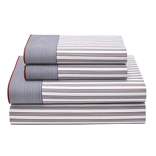 Tommy Hilfiger 22063182TH001 Ellington Stripe Sheet Set, Twin, Red/White