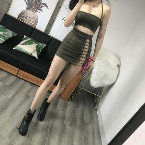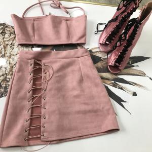 セットアップ セクシー 編み上げデザイン ブラトップ ホルターネック セパレート プチプラ ミニ丈スカート スエード