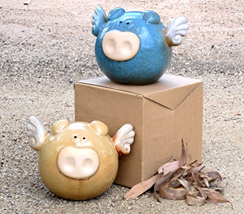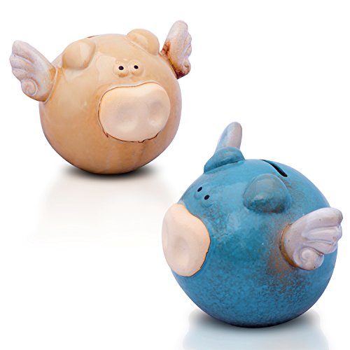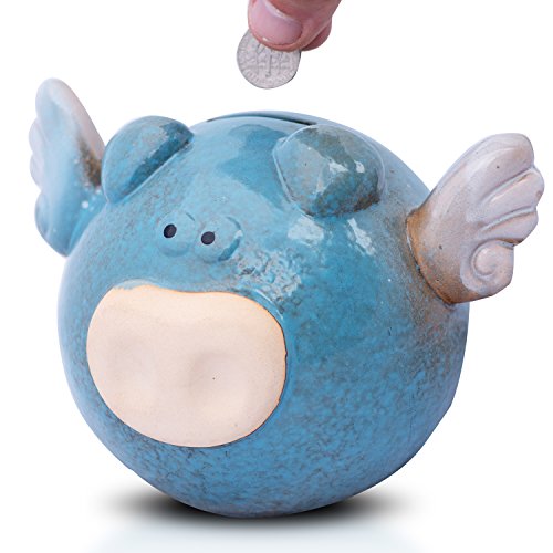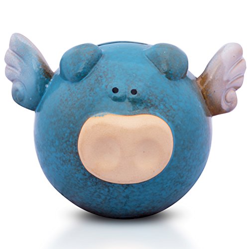 Spring End Sale! Unique Flying Pig Ceramic Piggy Bank For Kids Boys Girls Teens & Adults Savings (Blue)