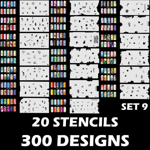 - 20 Pack of AirBrush-Depot's Most Popular Nail Stencil Designs Durable, Flexible, Reusable Mylar Stencil Sheets