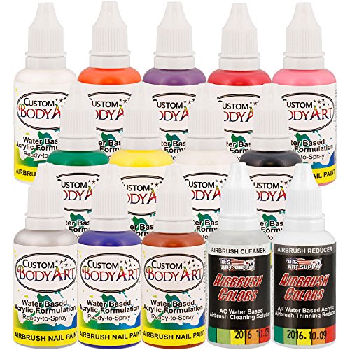 Master Airbrush® Brand Finger Nail Decorating System. 1 Airbrush, Air Compressor, Stencil Set of Over 100 Designs, 6' Hose, Kit of 12 Popular Nail Paint Colors in 2-oz Bottles, Airbrush Cleaner, & (Free) How to Airbrush Training Book to Get You Started.