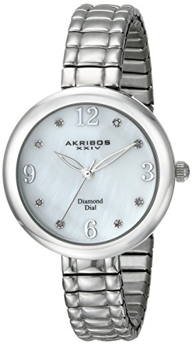 Akribos XXIV Women's AK765SS Quartz Movement Watch with White Mother of Pearl Dial and Stainless Steel Bracelet