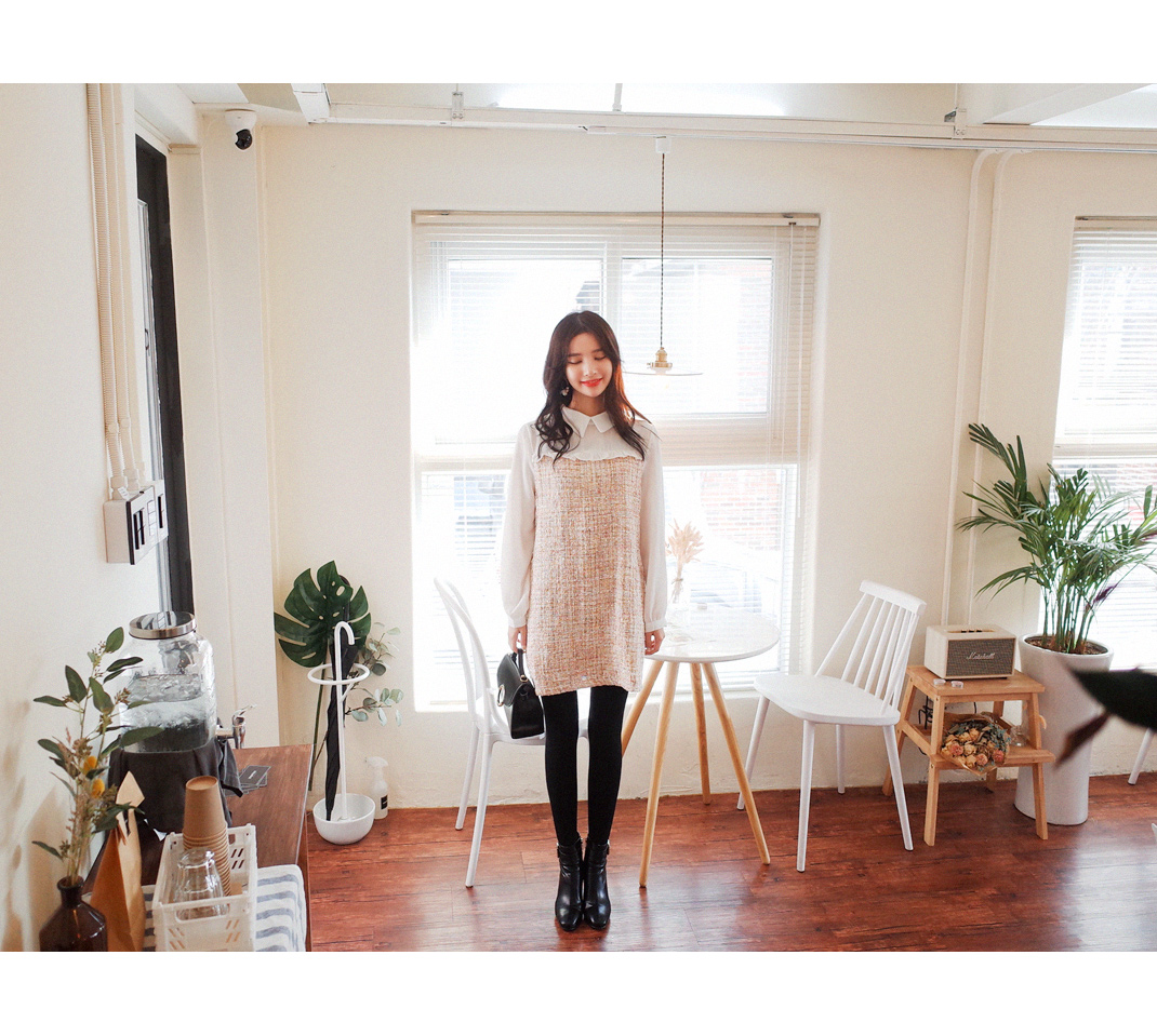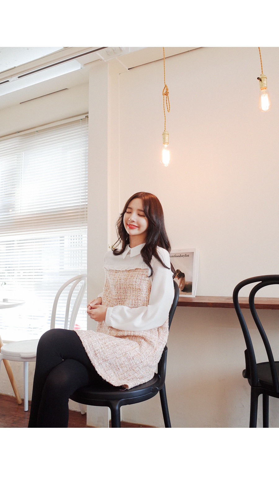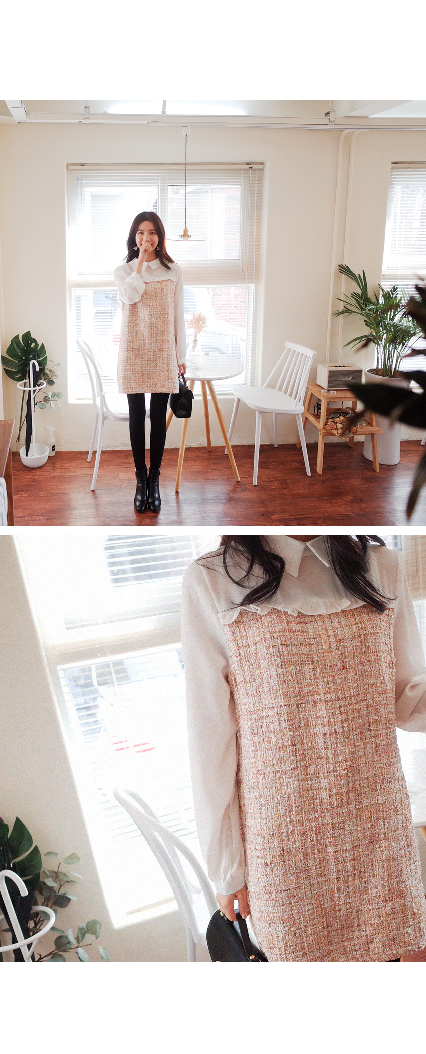 원피스 몸판은 트위드 원단으로 따뜻해보이면서도