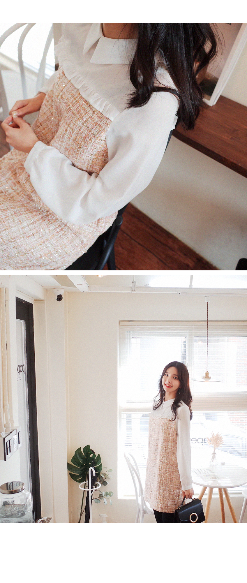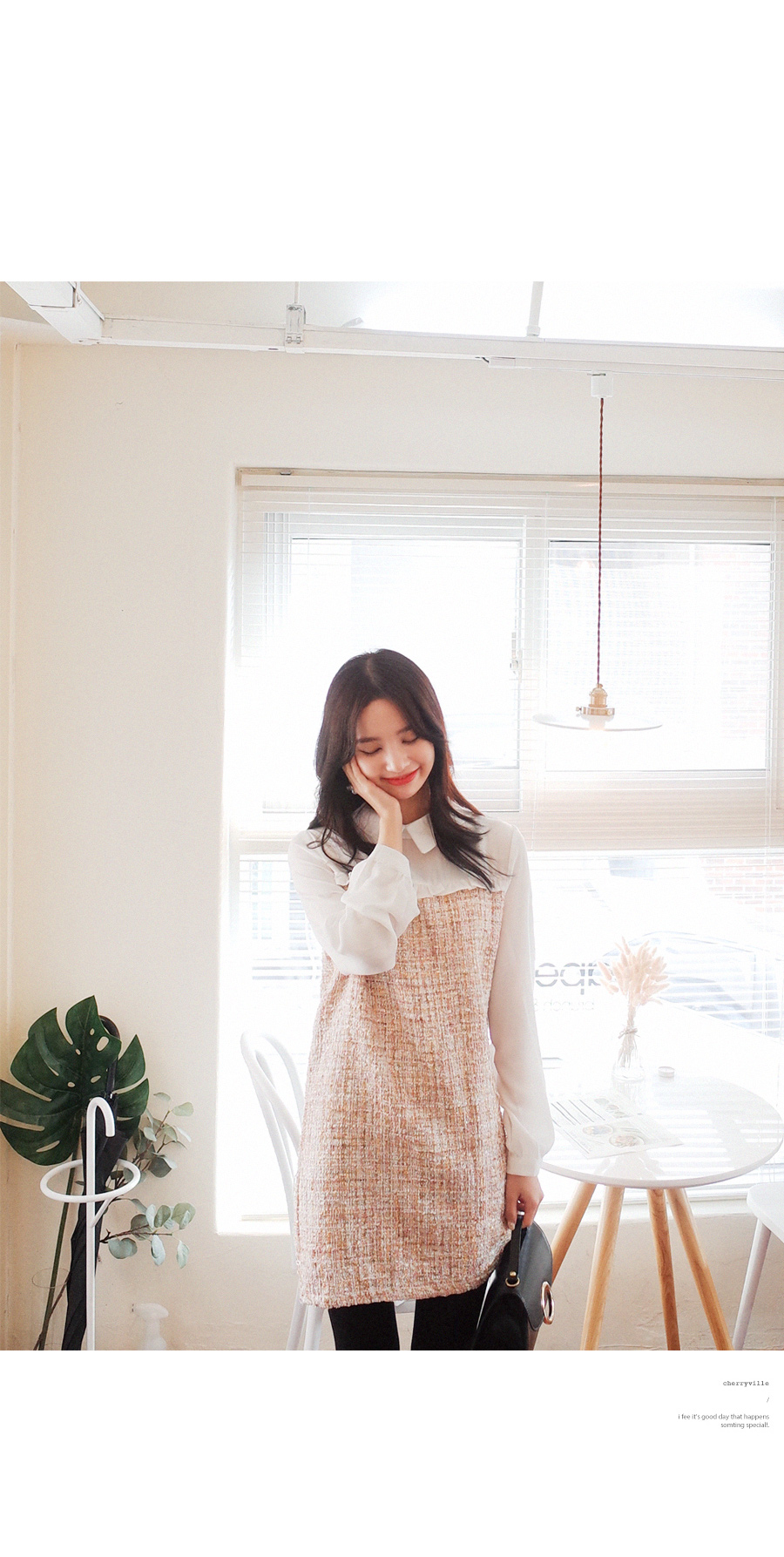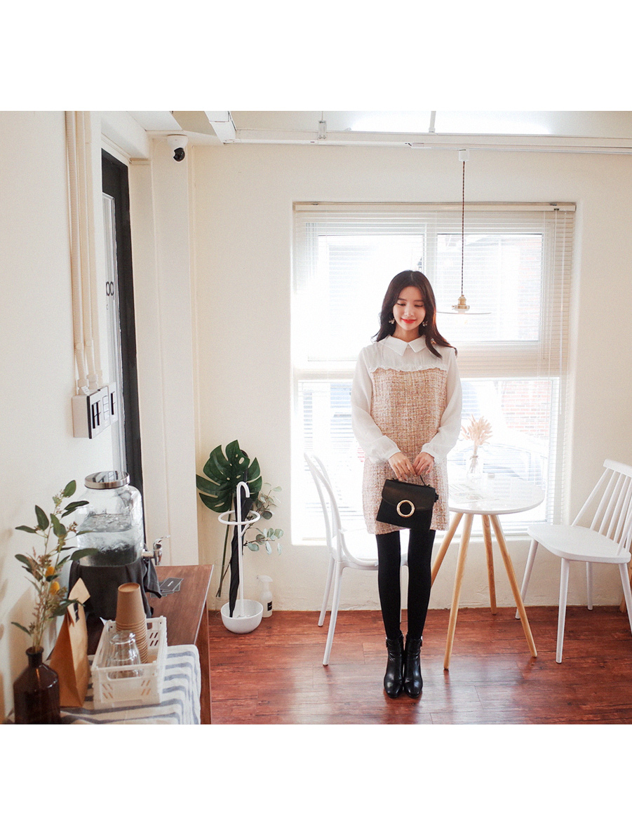 원피스 몸판은 트위드 원단으로 따뜻해보이면서도