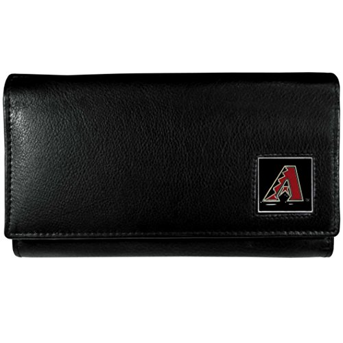 This genuine leather women's pocketbook features 9 credit card slots, a windowed ID slot, spacious front pocket, inner pocket and zippered coin pocket. The front of the pocketbook has a hand painted metal square with the Miami Marlins primary logo.Feature