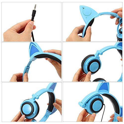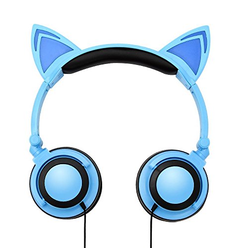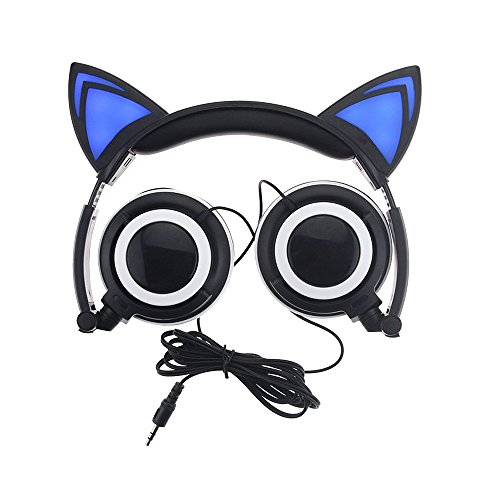 JankoPalise Cat Ear Headphone, Foldable Flashing Glowing Gaming Cat Headset Earphone With LED light For PC Laptop Computer Mobile Phone (blue)